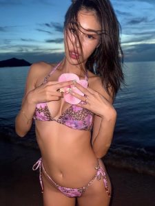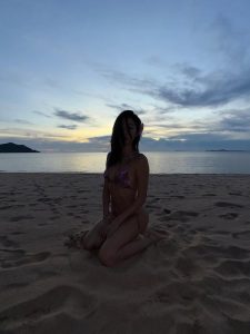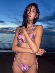 ยิปซี คีรติ ชุดว่ายน้ำ ลายดอกไม้สีชมพู่ สุดเช็กชี่ ในชุดว่ายน้ำบิกินี่ตัวจิ๋ว โชว์ผิวสีแทน และก้นกลมเด้ง  ทำเอาเอฟซี ยิปซี คีรติ ห้ามใจไม่ไหว เข้ามาส่องไอจีกันไม่หยุดจนลุกเป็นไฟไม่หยุด